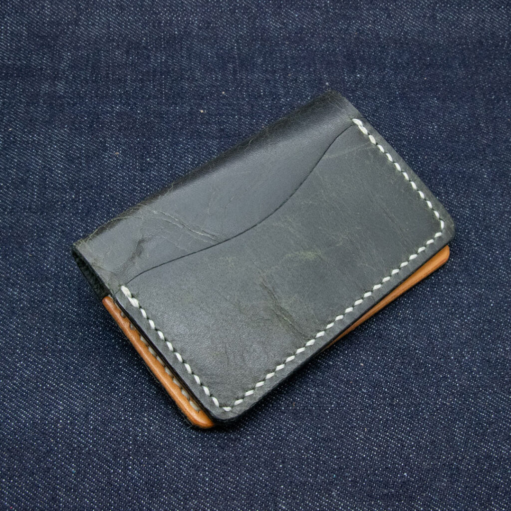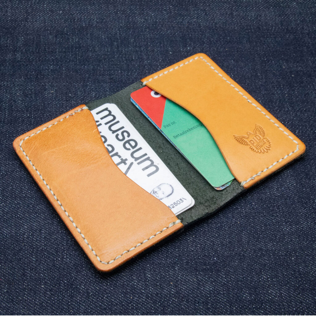 Gevouwen pasjeshouder met 3 vakken, geschikt voor zo’n 8 tot 10 pasjes.