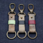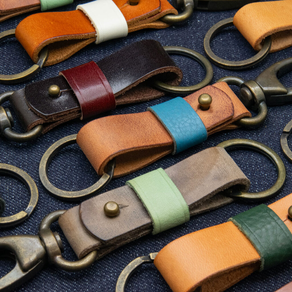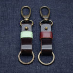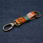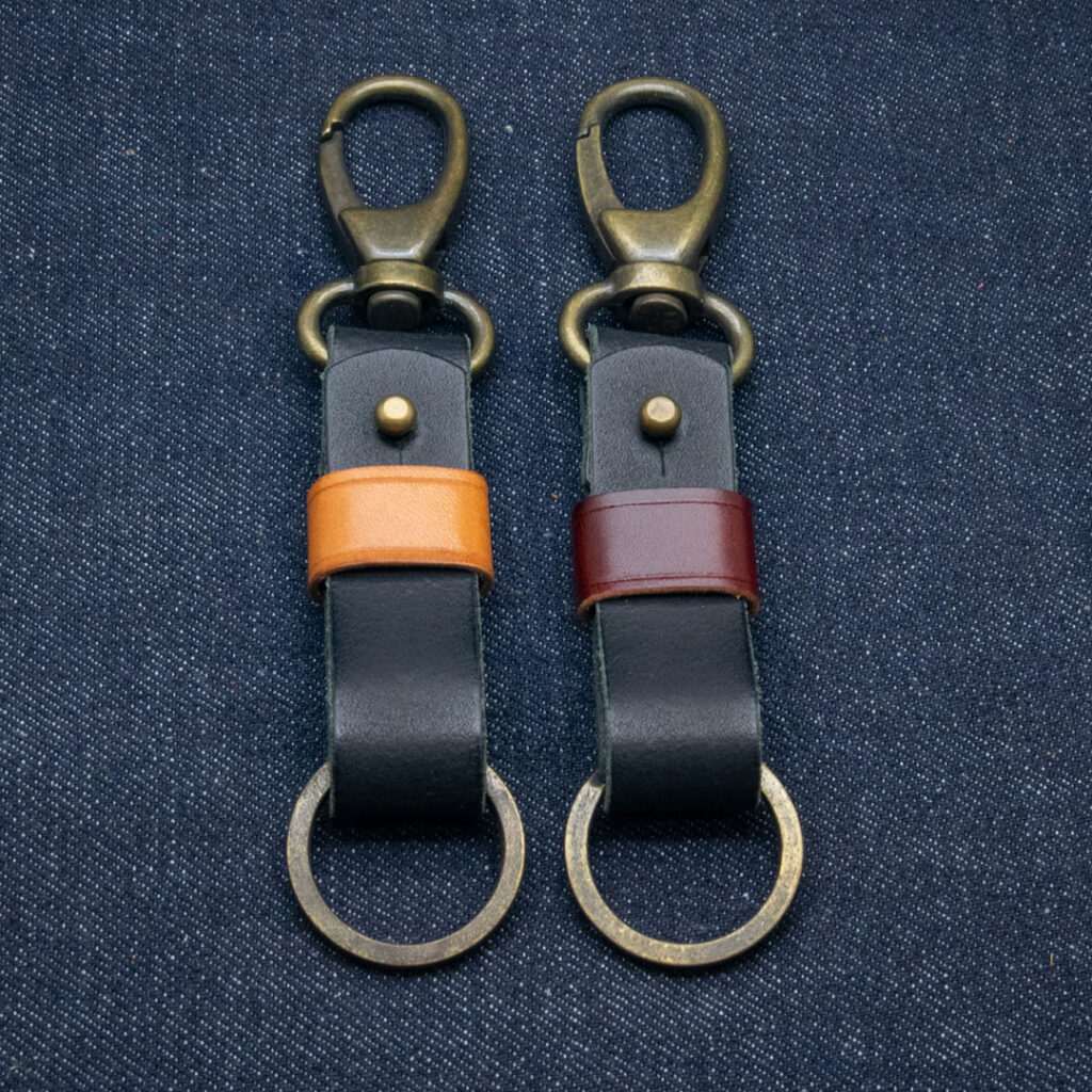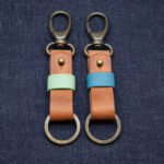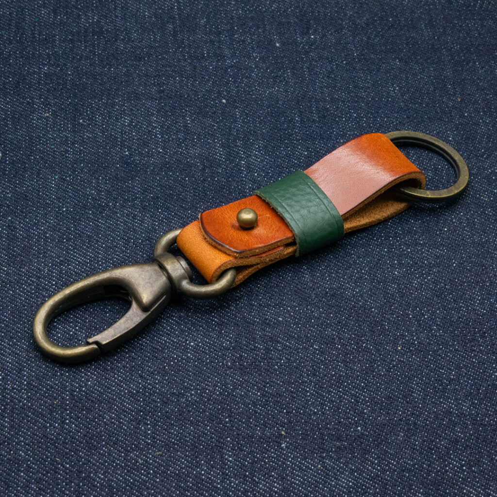Deze sleutelhanger geeft je de mogelijkheid om eenvoudig van sleutelbos te wisselen. De gekleurde bandjes zijn gemaakt om ook deze heel kleine restjes leer nog een mooi leven te kunnen geven.